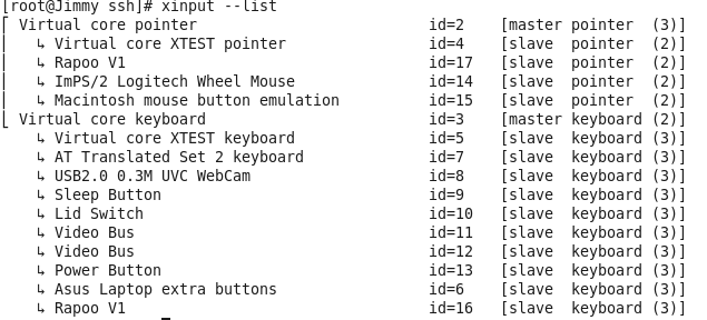 禁止touchpad:xinput set-int-prop 14 "Device Enabled" 8 0
