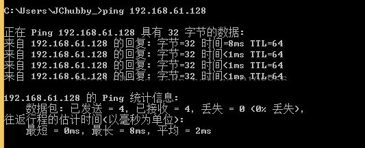 找到ip地址,可以在主機上ping一下,可以ping通就表示可以用