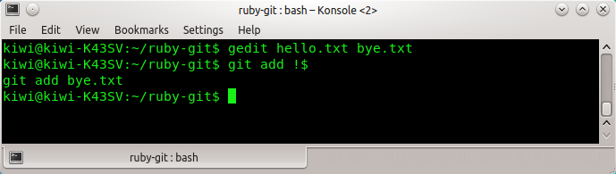 例子:如果我對hello.txt和bye.txt進行了編輯,然后希望使用git add添加這兩個文件。就可以使用:git add !*