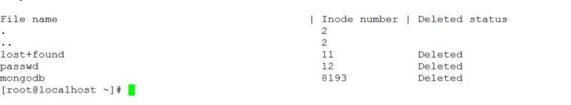 根據輸出信息,標記為Deleted狀態的是已經刪除的文件或目錄。同時還可以看到已刪除文件的inode值,接下來就可以恢復文件了。