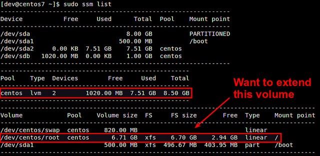 如果你在存儲池中有額外空間,可以擴大存儲池中現有的磁盤卷。為此,使用ssm命令的resize選項。
