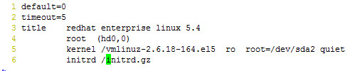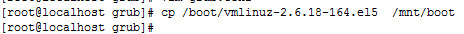 6、切換到/mnt/boot/grub目錄,創(chuàng)建grub.conf文件,文件內(nèi)容如下