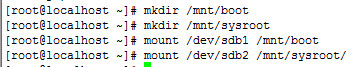 (4)新建兩個(gè)掛載點(diǎn),把新硬盤的前兩個(gè)分區(qū)分別掛載到兩個(gè)掛載點(diǎn)上