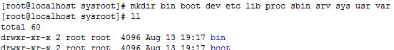 7、在新硬盤的根分區(qū)下建設(shè)文件系統(tǒng)(下面建設(shè)的是必要的目錄,可根據(jù)實(shí)際情況設(shè)置哦)