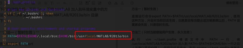 執行 vim ~/.bash_profile 修改文件中 PATH 一行,將 /usr/local/MATLAB/R2013a/bin 加入到 PATH=$PATH:$HOME/bin 一行之后(注意以冒號分隔),保存文件并退出,執行 source ~/.bash_profile 使其生效,這種方法只對當前登陸用戶生效。