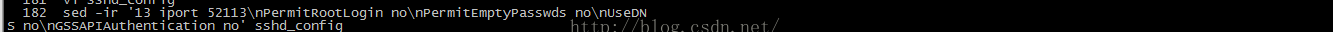 b.通過sed命令進行批量修改:sed -ir '13 iport 52113/nPermitRootLogin no/nPermitEmptyPasswds no/nUseDNS no/nGSSAPIAuthentication no' sshd_config