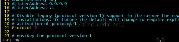 5.通過在vi的命令模式下輸入:set nu 命令進行設置行號: