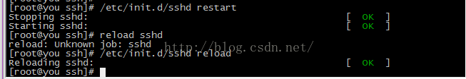 9.通過/etc/init.d/sshd restart和/etc/init.d/sshd reload命令進行重啟sshd服務以使得配置生效: