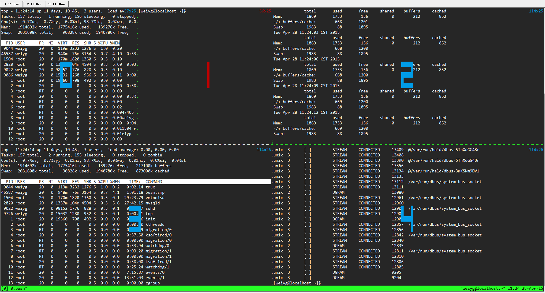公司服務器上調試程序,開了一堆窗口。出去吃了個飯,發現SSH超時了,broken pipe。重頭開始。。。FML!如果你之前使用了tmux就不會有這樣的問題,attach就能找回原來打開的那些窗口。