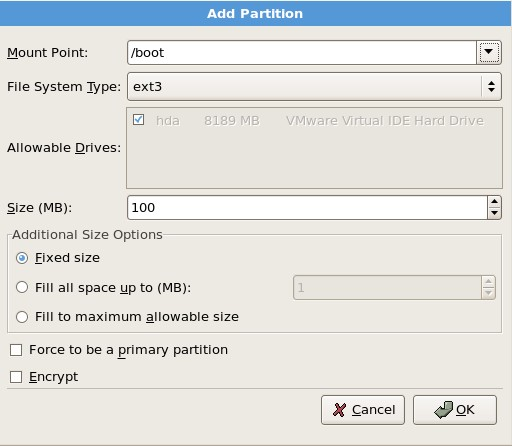 說明:/boot 分區(qū)是系統(tǒng)啟動所需要的文件,就跟windows的C盤中的windows 目錄類似,這個分區(qū)中的文件并不大,只需要100M足夠。Swap分區(qū)是交換分區(qū),當(dāng)內(nèi)存不夠時,系統(tǒng)會把這部分空間當(dāng)內(nèi)存使用。/ 分區(qū),其實就是一個根目錄,在以后的章節(jié)中會介紹到。現(xiàn)在不懂并沒有關(guān)系,只要知道有這么一個東西即可。/data 這個分區(qū)是我們自定義的,就是專門放數(shù)據(jù)的分區(qū)。