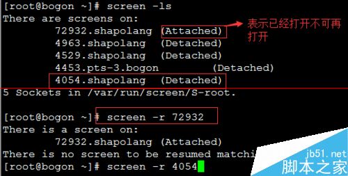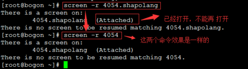 可以通過screen -r 4054.shapolang或者screen -r 4054獲取指定會話(建議使用后一種,第一種比較復雜)