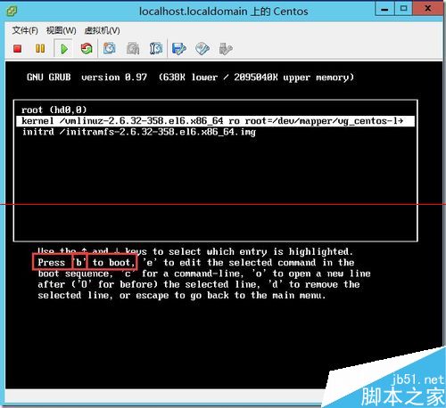 4、然后回車后,回到該界面,然后按b進行重新引導系統