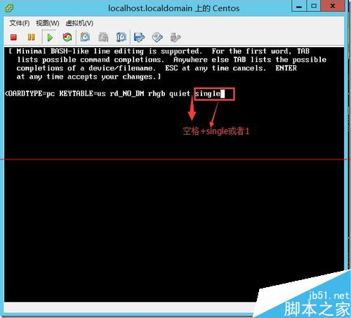 3、在rhgb quiet后回車輸入single或者1,然后回車