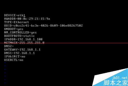 4、進入到此界面后按“i”鍵進行網(wǎng)卡信息配置,正常情況下是沒有數(shù)值的,這里我已經(jīng)填寫好了