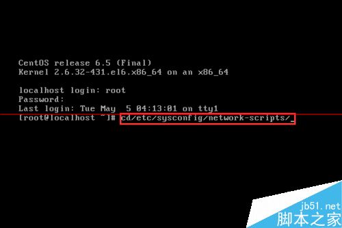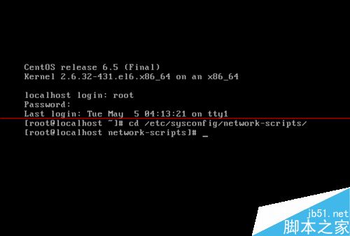 2、輸入“cd /etc/sysconfig/network-scripts/”語句點回車,進入到該路徑下