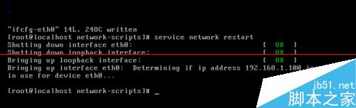 7、網(wǎng)絡(luò)服務(wù)重啟完成后即完成了網(wǎng)卡的配置