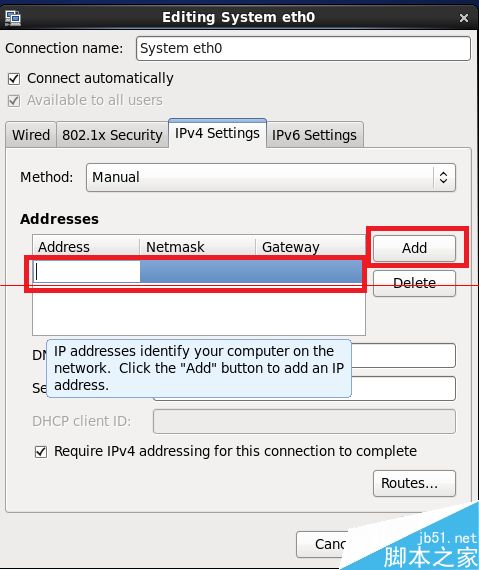 5、在打開的手動模式頁面中點擊右邊的Add按鈕,鼠標會自動定位到格子里讓你填寫相關信息;