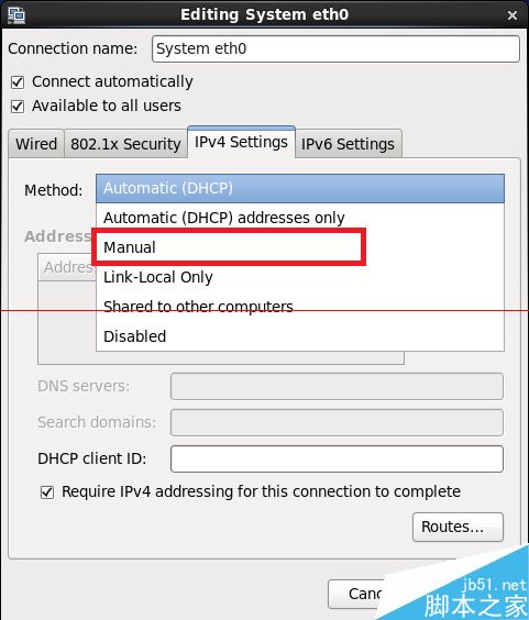 4、單擊Automatic(DHCP),選擇manual(手動)模式。