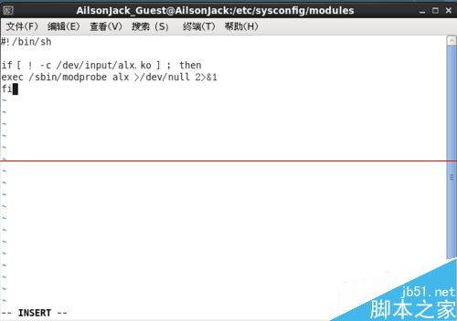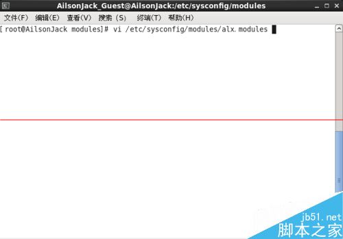 6、執(zhí)行命令:vi /etc/sysconfig/modules/alx.modules