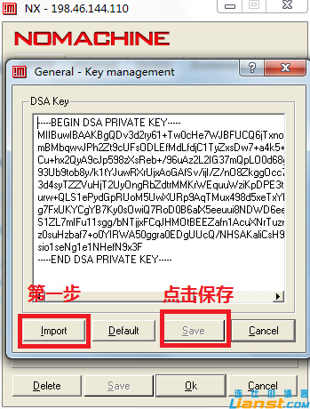 4.如 果鏈接不成功,可能你需要將服務器上的顧客證書/backup/www.ctohome.com/client.id_dsa.key下載到你的電腦上, 然后導入windows客戶端的FreeNX中,然后再重新嘗試,見下圖: