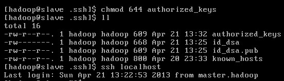 如上圖,已經可以在slave.hadoop主機使用ssh無密碼登錄主機master.hadoop了。