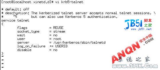 cd /etc/xinetd.d ,察看telnet服務的配置文件krb5-telnet的設置: