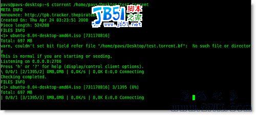 2)另一個重要的BT下載工具Transmission也有命令行版本。使用transmission下載文件,你需要提供已下載的種子文件,而不像rtorrent那樣只提供一個鏈接。比如:transmissioncli /home/pays/Desktop/test.torrent