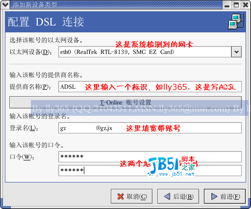 第三步,配置ADSL連接。此時會出現一個ADSL連接的配置界面: