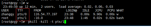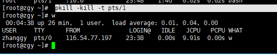 因為他的tty是pts/1 所以輸入pkill -kill -t pts/1然后確定