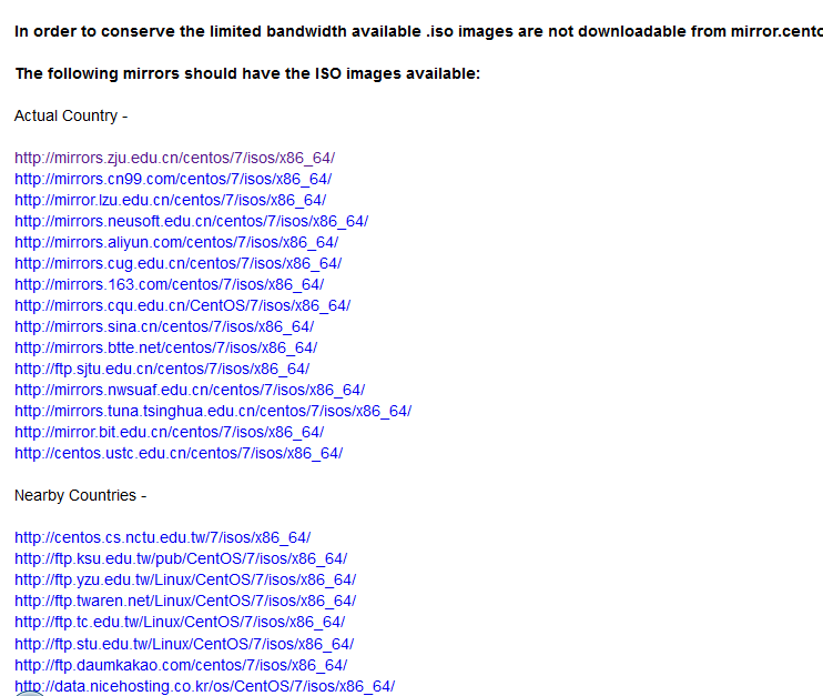 下載這個(gè)CentOS鏡像的方式有很多種,這這里只介紹2種比較好的下載鏈接網(wǎng)址與方式。