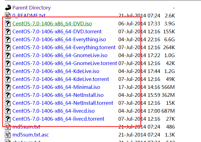 下面這些列出的,是CentOS7 的不同小版本,一般的,我們下載DVD的就可以了。