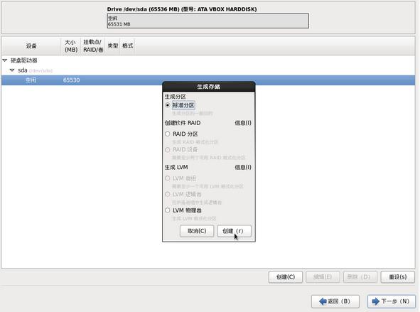 13、點擊“創建”,選擇“標準分區”,再點“創建”