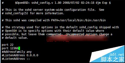 會出現如下提示,大家能夠看到#port 22,代表默認端口22。按下鍵盤的a,vi命令中a是編輯,你按下a之后進入編輯狀態,這時候可以用鍵盤的上下鍵移動綠色光標并用鍵盤的delete鍵刪除前面的#號了。
