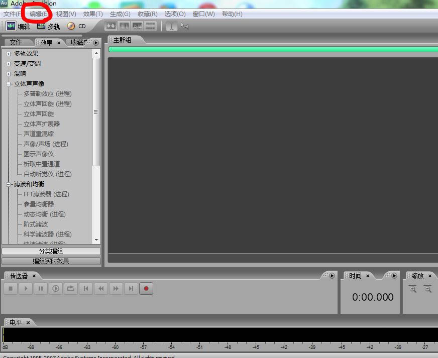 2、打開軟件界面,點擊編輯>>音頻硬件設置