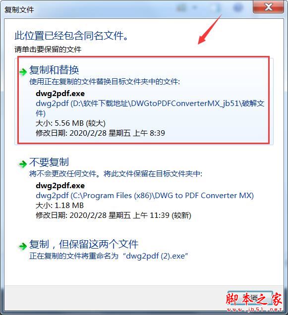 8、將軟件包內的破解文件夾里dwg2pdf.exe粘貼到軟件安裝目錄里(默認C:/Program Files (x86)/DWG to PDF Converter MX)
