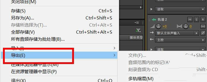 1、當我們制作好混音項目文件后,我們點擊導出這個二級菜單按鈕。
