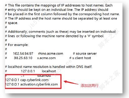 安裝完成,先不要啟動威力導演,我們現在需要修改hostshosts文件,在文件,在hostshosts文件里加入以下內容文件里加入以下內容,作用是屏蔽威力導演聯網驗證,作用是屏蔽威力導演聯網驗證,具體步驟請往下看。,具體步驟請往下看。
