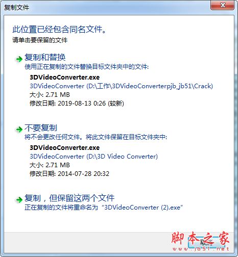 7.將安裝包中Crack文件夾里的"3DVideoConverter.exe"復制到軟件安裝目錄,選擇復制和替換,軟件安裝目錄為"D:/3D Video Converter"