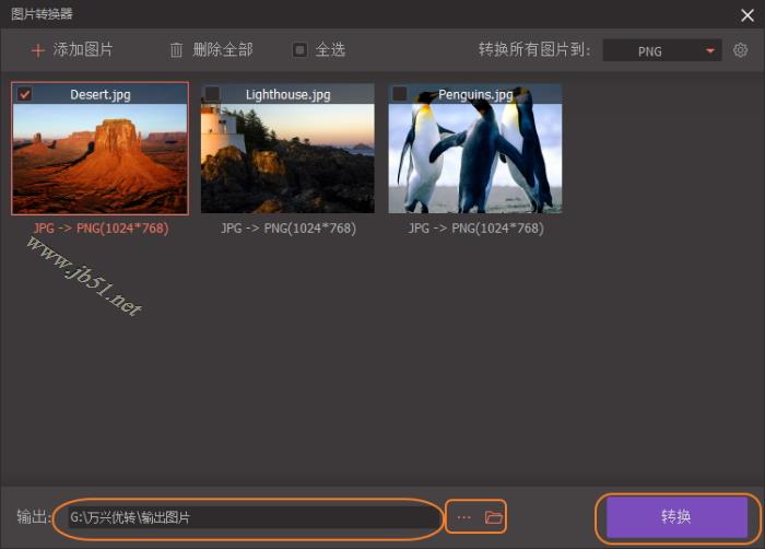 在轉換過程開始之前,您可以通過單擊輸出選項卡處的...按鈕來更改輸出文件位置。最后,點擊轉換按鈕以將PNG轉換到JPG或其他格式。您可通過打開文件夾圖標來找到完成轉換的圖片。