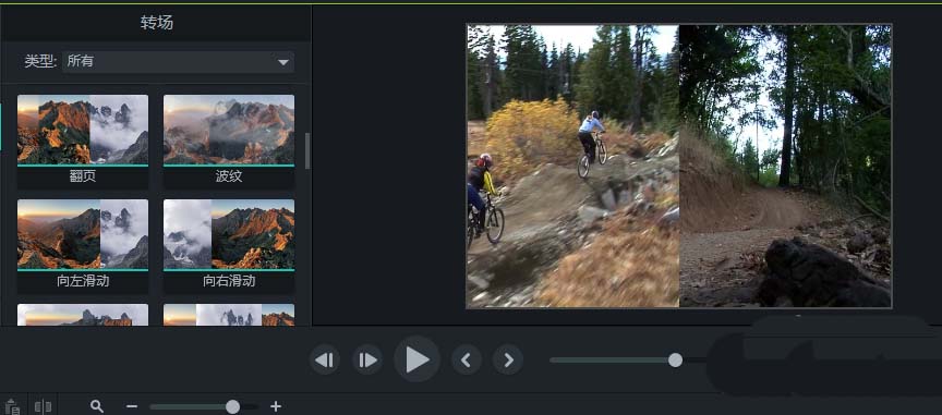 6、添加了向左滑動的轉場之后,播放時間軸,當時間軸播放到兩個視頻之間的轉場的時候,就會出現向左滑動的效果了。