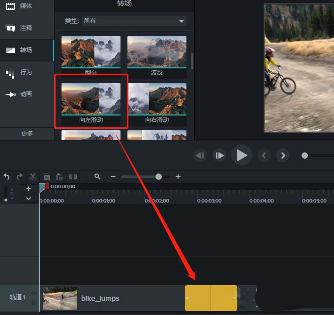 以上就是Camtasia9給素材添加向左滑動的轉場效果的教程,希望大家喜歡,請繼續關注武林網。