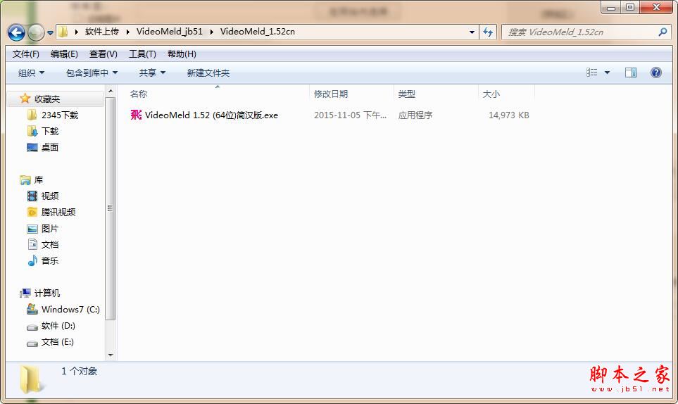 1.在本網(wǎng)站解壓后,雙擊"VideoMeld 1.52 (64位)簡(jiǎn)漢版.exe"文件,如下圖