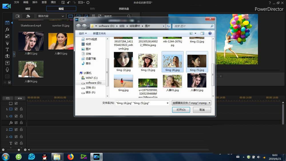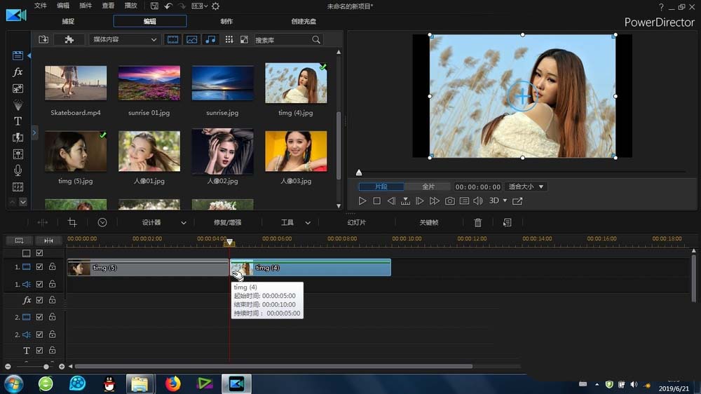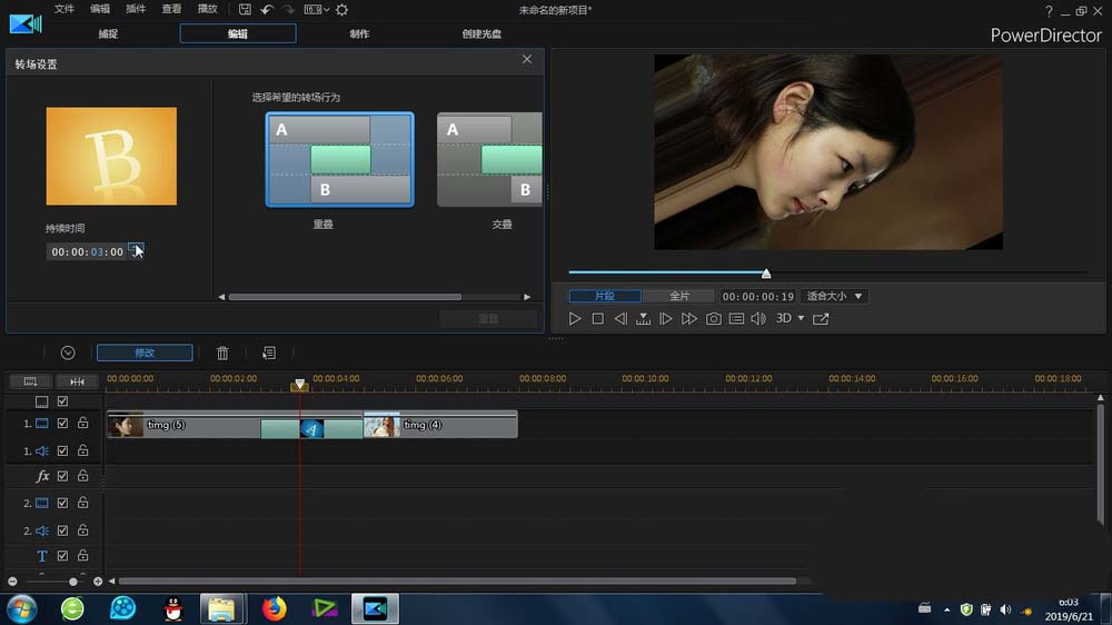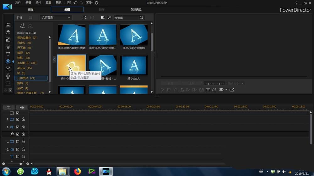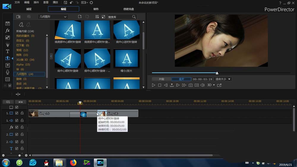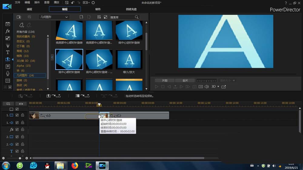 威力導演怎么給素材添加繞底部中心逆時針旋轉轉場效果?