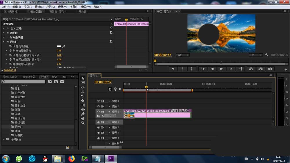 4、接下來就是關鍵的效果添加,拖動“閃光燈”效果到素材上即可