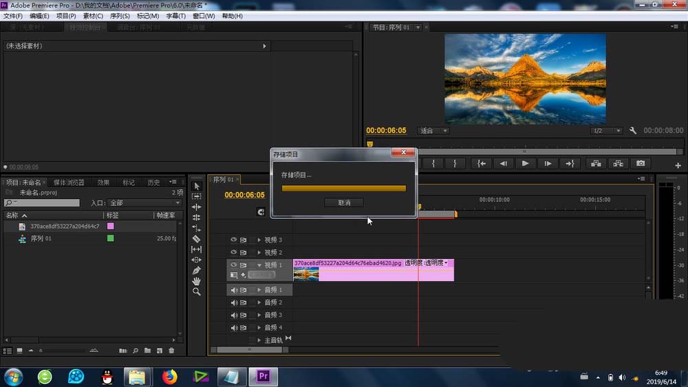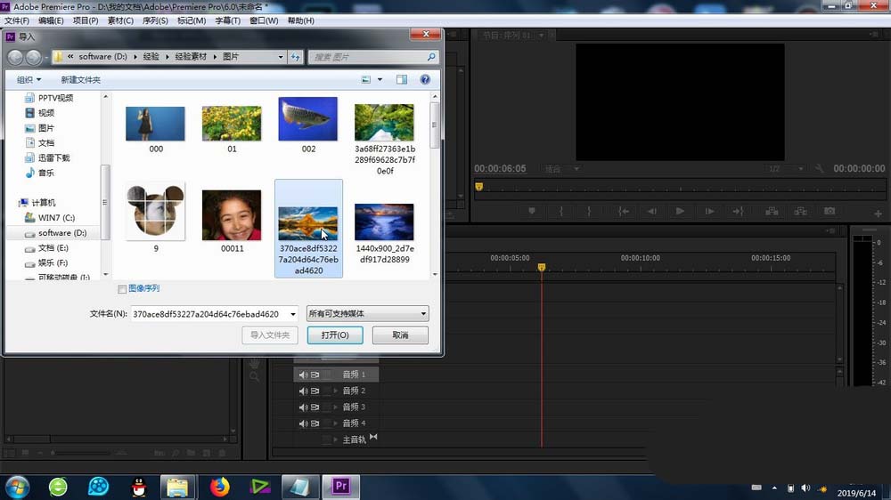 2、在premiere的素材庫中,導入圖片或者視頻素材