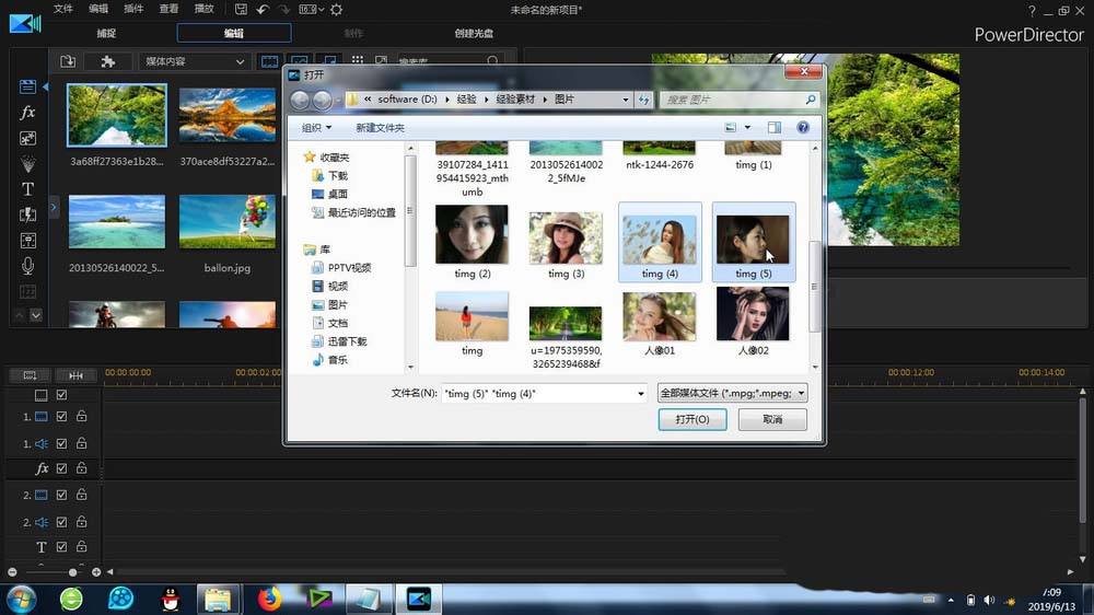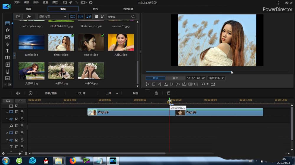 3、導入之后的素材,將其導入到威力導演的時間線視頻軌道上,保證首尾相連