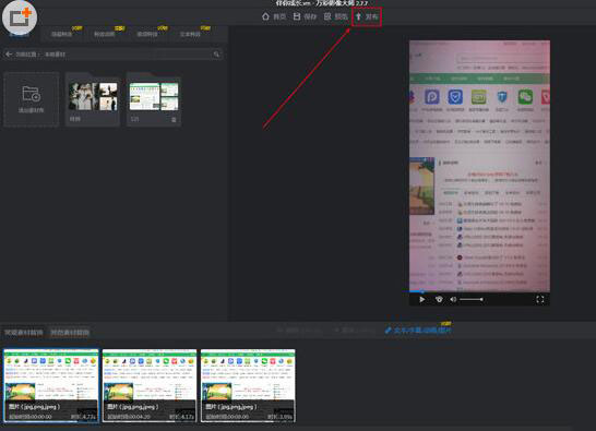 2、既然是想要自己的視頻、圖片等輸出文件不出現“水印”,當然是需要輸出文件才行啦,文件編輯完成之后就可以點擊其中的“發布”選項發布自己的作品了,如下圖所示: