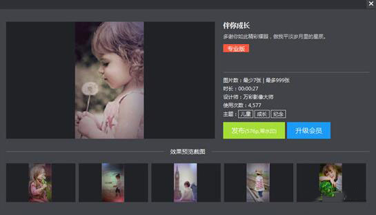 1、如果用戶本身就是VIP會員,那么在使用在線模板中的個人版、專業版、企業版時,就可以無需擔心水印的問題,從而輸出超清無水印的相冊視頻,如下圖所示: