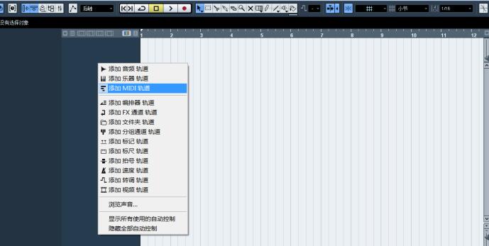打開Cubase軟件,新建工程,右擊選擇【添加MIDI軌道】,如圖,