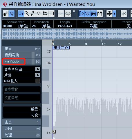 鼠標雙擊音頻文件,打開采樣編輯器,在右側工具欄中點擊“VariAudio”選項,將其展開,